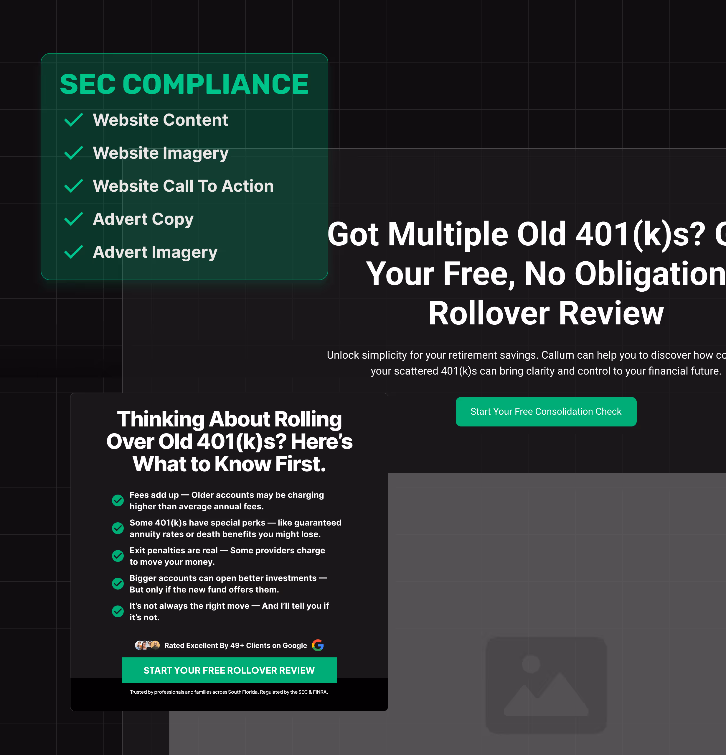 With each financial advisor/firm we work with, we work hand in hand with their compliance department. We ensure everything we do is signed off before we launch anything.
